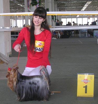 29 и 30 апреля 2006 года на территории Национального комплекса "Экспоцентр Украины" в Киеве проходили две международные выставки собак всех пород с присуждением CACIB FCI, на которые съехались владельцы сотен именитых чистопородных собак, чтобы сразиться за наивысший для собак титул - CACIB. На выставку первого дня было зарегистрировано 1592 собаки, второго ( с юниор-дерби) - 1771. В эти весенние дни мы, украинские собаководы, празднуем 10-летие нашего членства в Международной Кинологической Федерации. На выставке экспертизу собак проводили 33 эксперта из 19 стран мира. В рамках выставки проводился конкурс "Юный хендлер", где замечательно выступили наши девочки с йоркширскими терьерами. В младшей группе 1 место заняла Пискун Даша, а старшую группу выиграла Аверкина Наталья. ![]() Выступая с молодым кобелем Гламур Кутюр Калибр Спай, во второй день Аверкина Наталья стала лучшим юным хендлером двух выставок, выиграв SUPER BIS конкурса "Юный хендлер". ![]() Ринг йоркширських терьеров Зарегистрировано 46 йоркширских терьера. Экспертизу проводил эксперт из Хорватии Dipling Boris Spoljaric. Мы выставляли в классе юниоров Днипро-Талисман Барби Супер Шоу, которая вновь подтвердила свою высококлассность, став лучшим юниором из 9-ти собак. Продолжает набирать опыт Гламур Кутюр Форсаж, выиграв в щенках среди кобелей. А опыт будем перенимать у папы - Мини Шоп Коза Ностра, который стал лучшим представителем породы и вторым в группе!!! В свои 2 года и 3 месяца стал новым Интерчемпионом!!! Поздравляем Анищенко Наталью с тем, что у нее в доме родилась такая уникальная собака, которую она УВИДЕЛА глазами профессионала и ДЕЛАЕТ руками профессионала. ![]() В расстановку попали: КОБЕЛИ Щенки (3 собаки) 1 место - Гламур Кутюр Форсаж (Мини Шоп Коза Ностра х Мини Шоп Ву-А-Ля) вл.Аверкина Т., Днепропетровск ![]() 2 место - Мини Шоп Наполеон ( ? х ? ) вл.Бабаева А., Москва ![]() Юниоры (1 собака) 1 место - Favorit Dog Jeffri (Mini Shop Goudini x Mini Shop Magic Sharm)вл.Левченко О., Донецк ![]() Интермедиа (4 собаки) 1 место,САС - Днипро-Талисман Звездный Принц (Московский Талисман Декорейшн х Днипро-Талисман Лулу) вл.Рыбачок Е., Киев ![]() 2 место - Zvezdnyi Debjut Non-Stop (New-Love Parkside's Du Gue De L'Adour x Zvezdnyi Debjyt Cecilia Charm) вл.Элбакян И., Ялта ![]() 3 место - Patrik Serebryany Dogd (Csomalaki Aprod x Синти Киевская Дубрава) вл.Васильева, Киев ![]() 4 место - Galaxy Storm Blue Delight (Camparis Spitfire x Алл Ю Нид Ис Лав Блю Делайт) вл.Рудь И., Днепропетровск ![]() Открытый (7 собак) 1 место, САС,R.CACIB - Bruno Od Ka.Mi. (Orbi De Penghibur x Muesca Ad Operam) вл.Чувашова Н., Москва ![]() 2 место - Pa De Du Keeper Of Latinos Reputation (Camparis Latin Lover x Copyright Country Campar)вл.Кирсанова С., Москва ![]() 3 место - Camparis Spitfire (Aero's Country Classic x NicNak's She's A Keeper) вл.Рудь И., Днепропетровск ![]() 4 место - Fire Of Love Blue Delight (Амбассадор Оф Бьюти Блю Делайт x Blue Heaven's Enigma)вл.Журина В., Одесса ![]() Чемпионы (2 собаки) 1 место CAC, CACIB, BOB, BIG-II - Мини Шоп Коза Ностра (Durrer's Diamond Request x Mini Shop Merci Beaucoup) вл.Анищенко Н., Москва ![]() 2 место - Dzhek Pot Kubik-Rubik (Mini Shop Pigeon x Chisbarsel Viva Victoria) вл.Галетий И., Киев ![]() СУКИ Бэби (2 собаки) 1 место - Вива-Виола Венди ХХ-Век (Днипро-Талисман Ля Франс х Офелия Аленький Цветочек) вл.Пискун С., Днепропетровск 2 место - Красс Орион Мулен Руж (Ноэль Красс Орион х Жанетта Красс) вл.Гарулько В., Киев Щенки (5 собак) 1 место, ЛЩ - Золотинка Шелковая Мечта (Мини Шоп Морган-П х Диана Киевская Дубрава) вл.Кузьменко М., Киев ![]() 2 место - Мини Шоп Эмма ( ? х ? ) вл.Гриб А., Киев ![]() 3 место - Roksolana Hanum Lesley O'Hara (Mini Shop Bugi Vugi x Хильда Лесли О'Хара) вл.Водолазская Т., Днепр